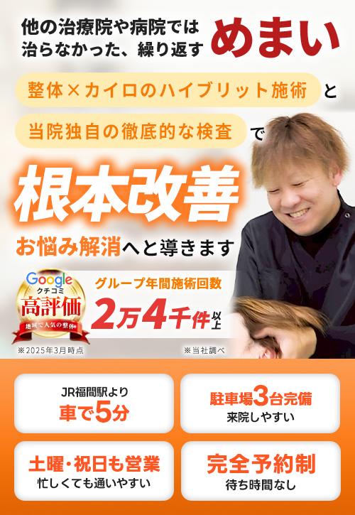 めまいの原因となっている部分へのアプローチを中心に行い、身体全体のバランスを戻すことで、最大限効果的な施術を行います。